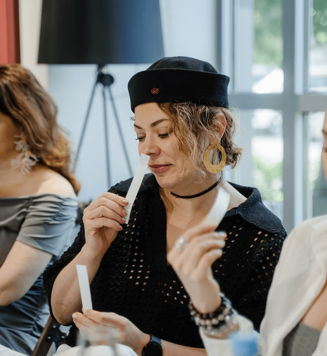 Наш совет: Идеальный сценарий — это сначала полностью погрузиться в творческий процесс создания аромата, а уже потом перейти к фуршету. Так вкусовые ощущения не будут смешиваться с парфюмерными, и ничто не помешает тонкой работе обоняния.