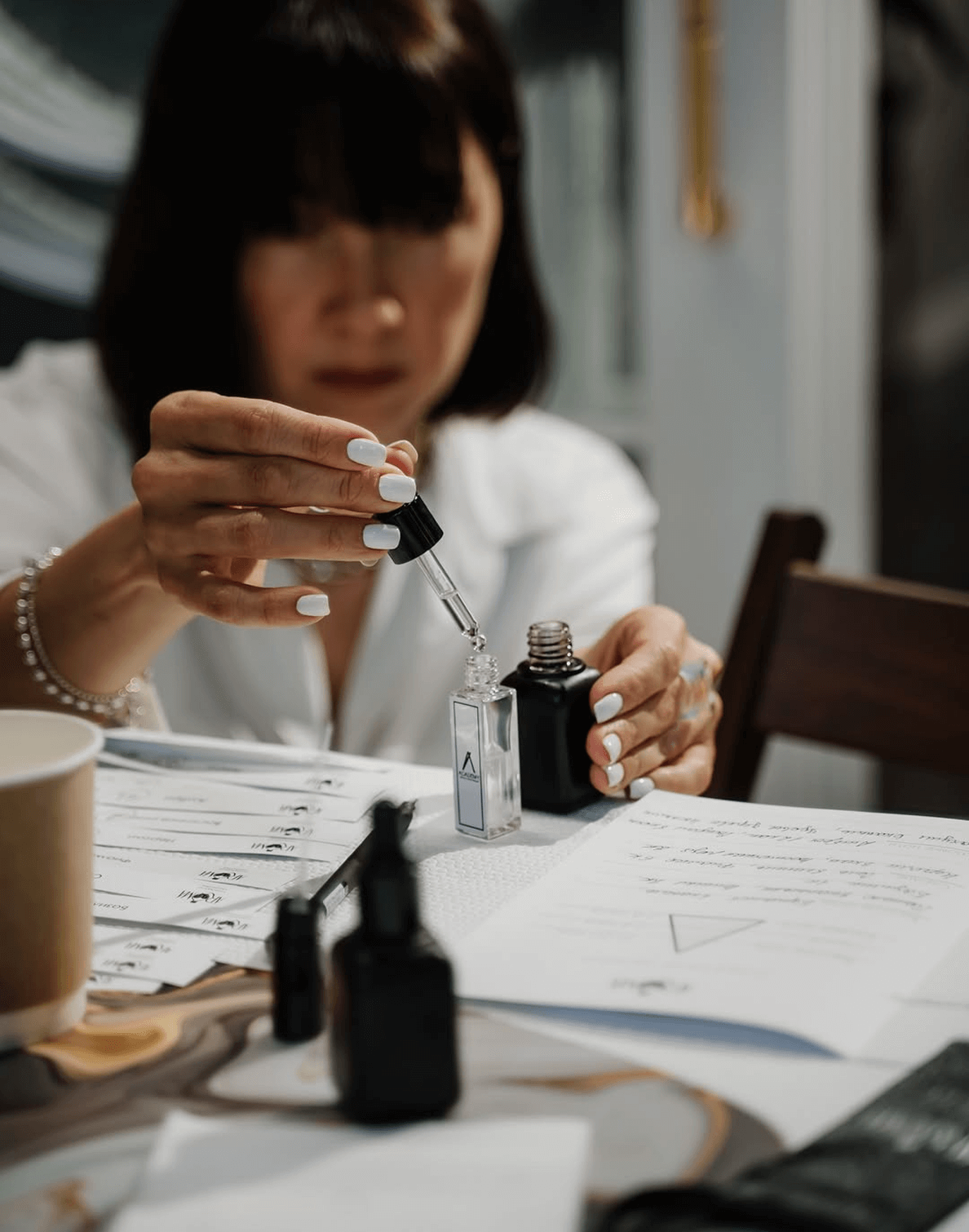 Парфюмер рассчитывает идеальную формулу, а Вы самостоятельно смешиваете выбранные компоненты